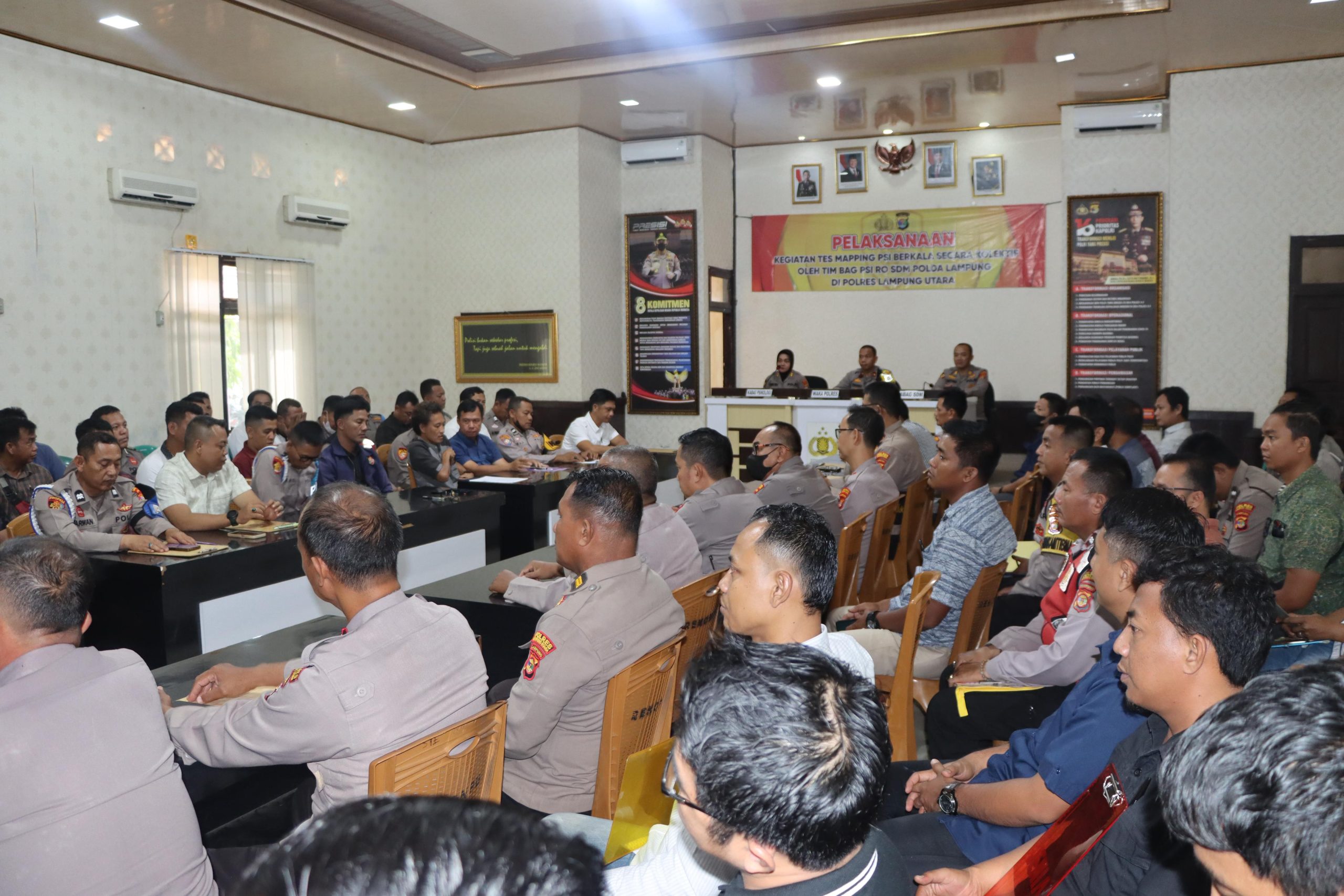 Tim Bagian Psikologi Biro SDM Polda Lampung kembali melaksanakan kegiatan Mapping Psikologi (Psi) Berkala secara kolektif dan rutin tahunan kepada personel Polres Lampung Utara yang dilaksanakan di Auala Rekonfu Mapolres setempat, Selasa (3/3/26).
