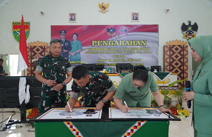 Tanggamus – Komandan Korem (Danrem) 043/Garuda Hitam, Brigjen TNI Sumarlin Marzuki, S.E., M.Han., melaksanakan kunjungan kerja ke Markas Kodim 0424/Tanggamus, Rabu (22/04/2026). Kunjungan tersebut turut didampingi Ketua Persit KCK Koorcab 043 PD XXI/Radin Inten, Ny. Bebi Sumarlin.