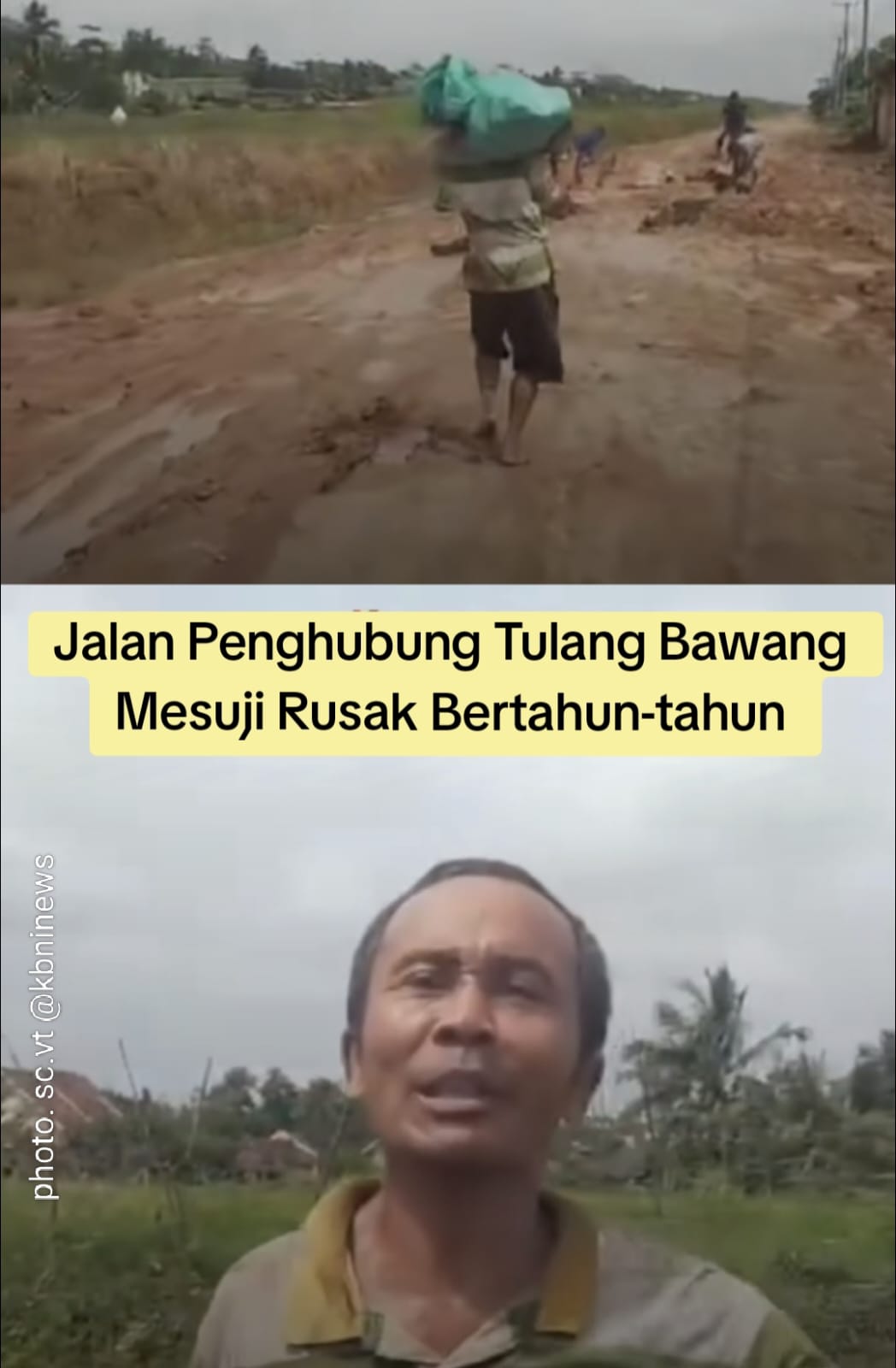 Berdasarkan keterangan warga dalam video tersebut, kondisi jalan tidak hanya berlubang, tetapi juga menjadi sangat licin saat hujan turun. Situasi ini disebut kerap menghambat mobilitas masyarakat, termasuk distribusi hasil pertanian yang menjadi sumber penghidupan warga sekitar.