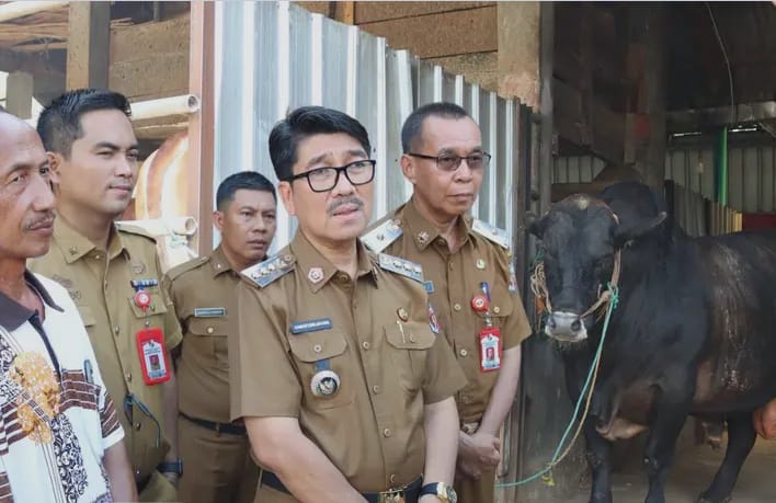 Guna memastikan kondisi kesehatan dan kelayakan sapi tersebut, Bupati Lampung Utara Dr. Ir. Hamartoni Ahadis langsung melakukan peninjauan fisik sapi yang akan dikurbankan pada Hari Raya Idul Adha Tahun ini, Senin 27 April 2026.