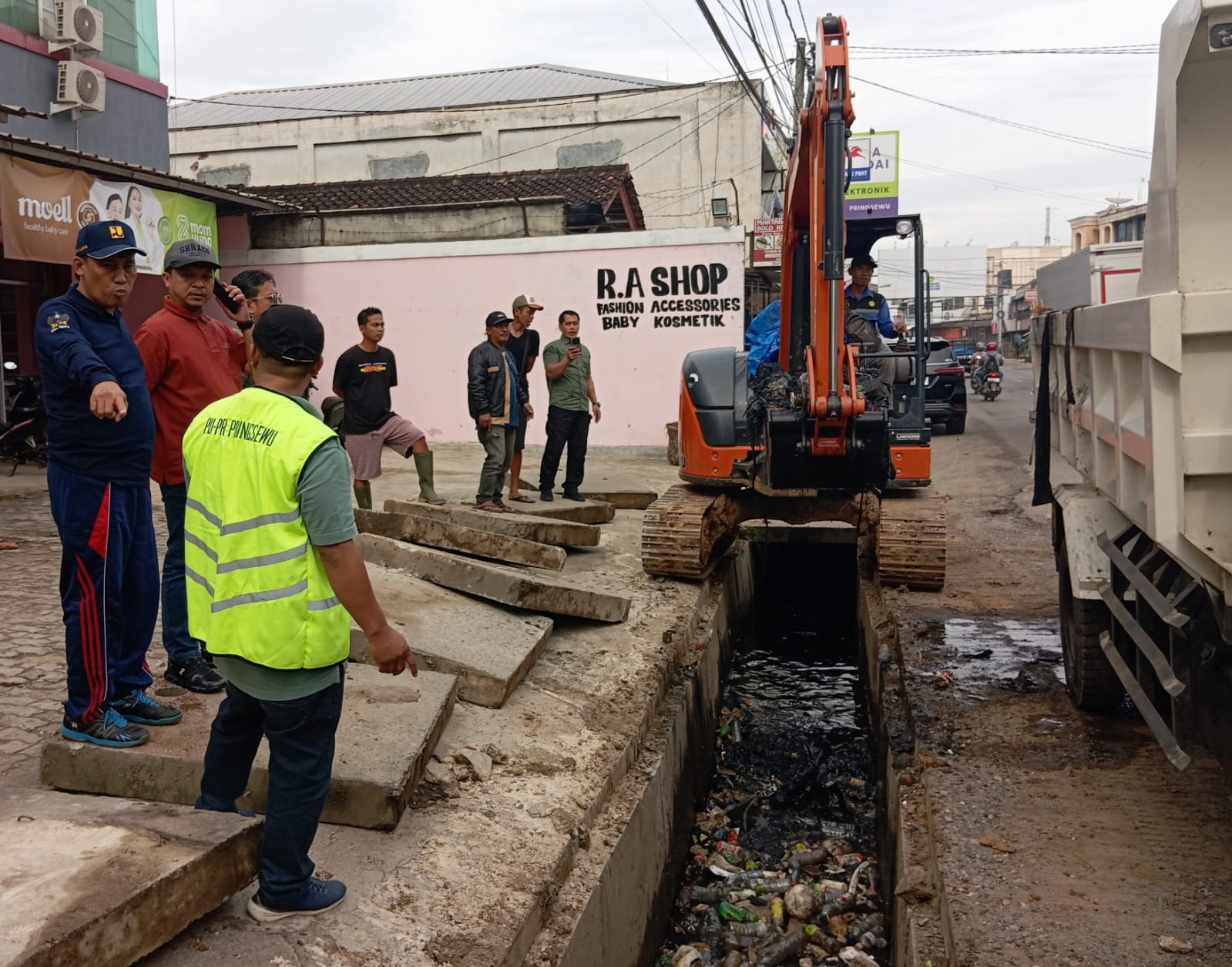 Pada Sabtu (28/2/2026) pagi Bupati Riyanto didampingi Kepala Dinas PUPR Pringsewu H. Amat Sefudin langsung turun ke lokasi di Jalan A. Yani atau sekitar simpang empat Lampu Merah Pringsewu yang diduga sebagai sumber mampetnya drainase akibat mengalami pendangkalan hingga penumpukan berbagai jenis sampah.